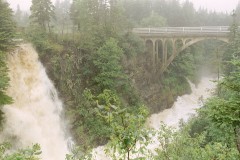 Wasserfalls, der richtig randvoll ist und mit großer Wucht an zwei Stellen über