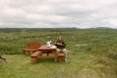 Gesamtbild. Wir futtern an einer romantisch verfallenden Strasse mit Blick über